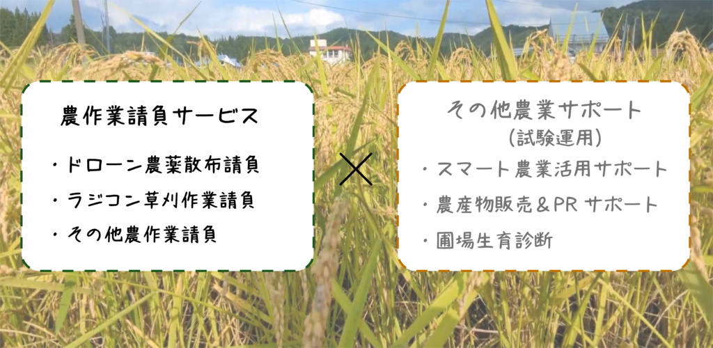 【農作業請負サービス】【その他農業サポート】の2つを展開予定です。